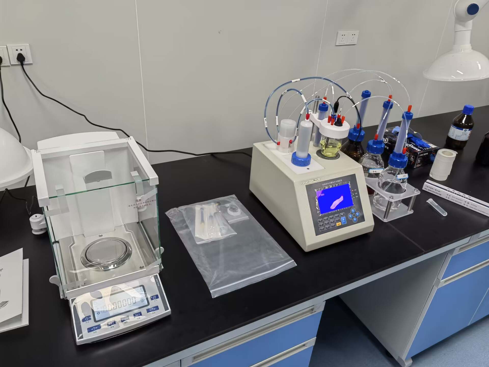 3.8、當(dāng)儀器電解平衡后,界面的中間位置 會(huì)顯示“準(zhǔn)備好滴定了,可以進(jìn)樣測(cè)試了”,儀器則可正常使用。