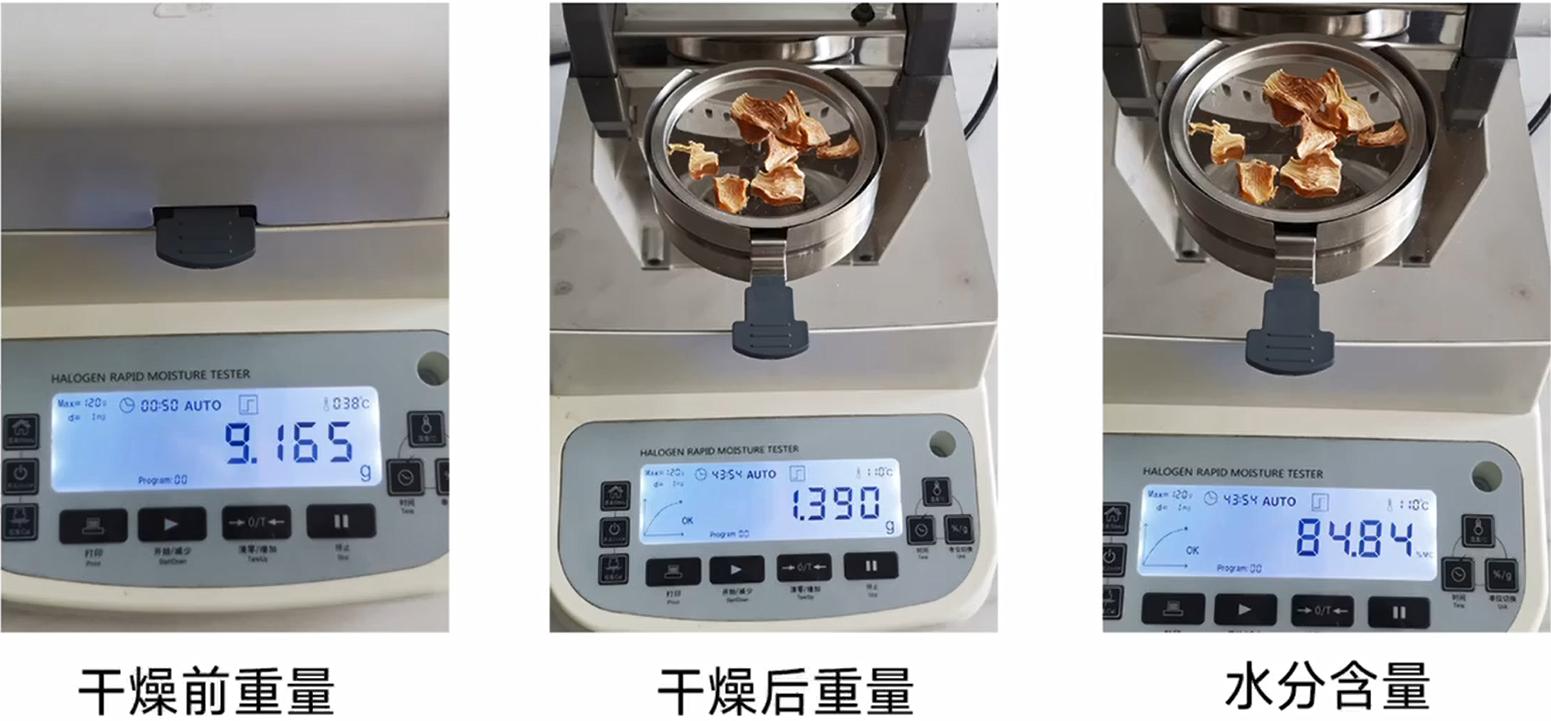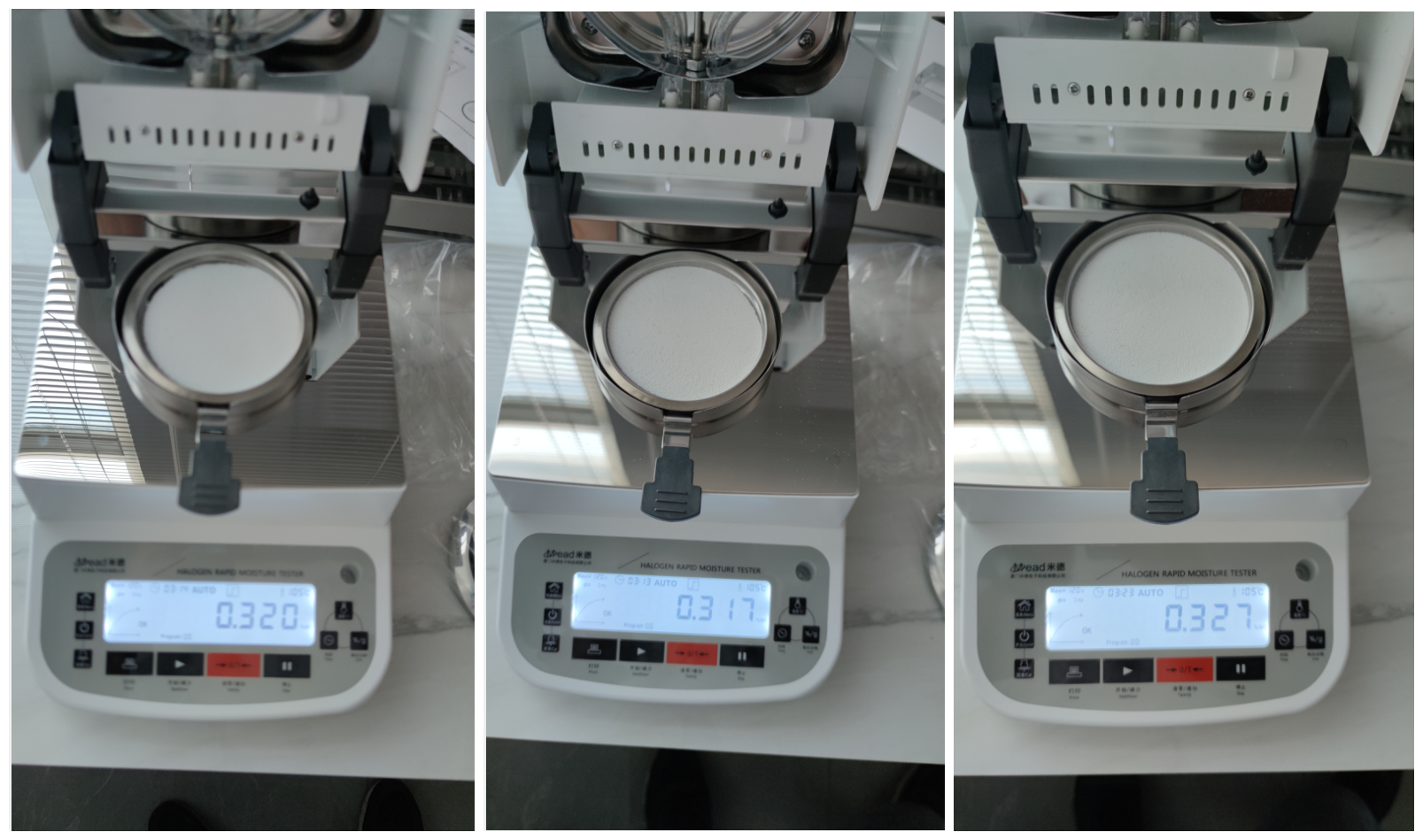 4.10、將裝有樣品的樣品瓶放入加熱孔中,插入空芯針,在水分測定儀上輸入樣品重量,調(diào)整延時時間,同時水分儀上開始測量。在屏幕上點(diǎn)方法,并且在方法中輸入樣品稱重質(zhì)量,等待測量完成顯示最終含水量結(jié)果。