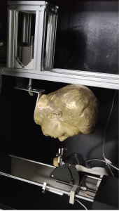 1、凸出形的的樣品固定裝置,能夠模擬口罩的實際使用狀態(tài),留出試驗靶區(qū),且不破壞試