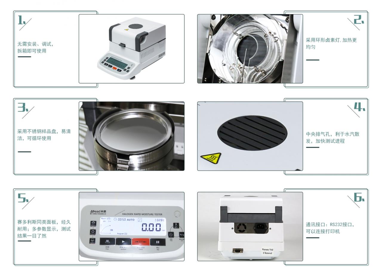 1.代替國(guó)標(biāo)烘箱法,用途非常廣泛、適合各行業(yè)的水分測(cè)定;
