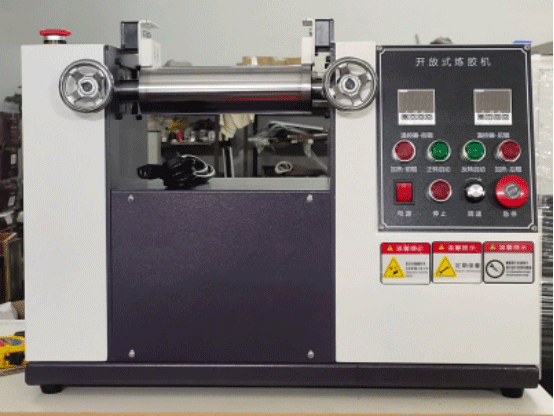 開煉機是一種由兩個平行排列輥筒構(gòu)成的輥間間隙可調(diào)的開放式塑膠材料間歇混合設(shè)備。其主要作用是把混合均勻的原料進行混煉、塑化,為壓延機提供混合塑化均勻的熔融料。開煉機在煉膠過程中主要是依靠兩個相對回轉(zhuǎn)的滾筒對膠料產(chǎn)生的擠、剪切作用,經(jīng)過多次捏合混煉,混煉過程中也會伴隨化學(xué)作用,將橡膠內(nèi)部的大分子鏈打斷,使膠料內(nèi)部的各種成分混合分散均勻,最終達到煉膠目的