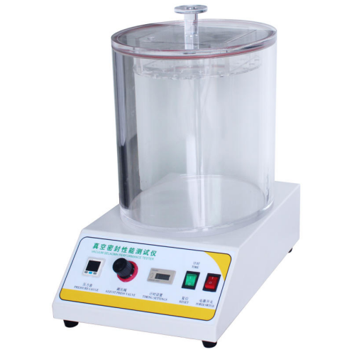通過對真空室抽真空,使浸在水中的試樣產(chǎn)生內(nèi)外壓差,觀測試樣內(nèi)氣體外逸情況,以此判定試樣的密封性能;通過對真空室抽真空,使試樣產(chǎn)生內(nèi)外壓差,觀測試樣膨脹及釋放真空后試樣形狀恢復情況,以此判定試樣的密封性能。